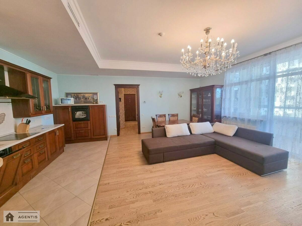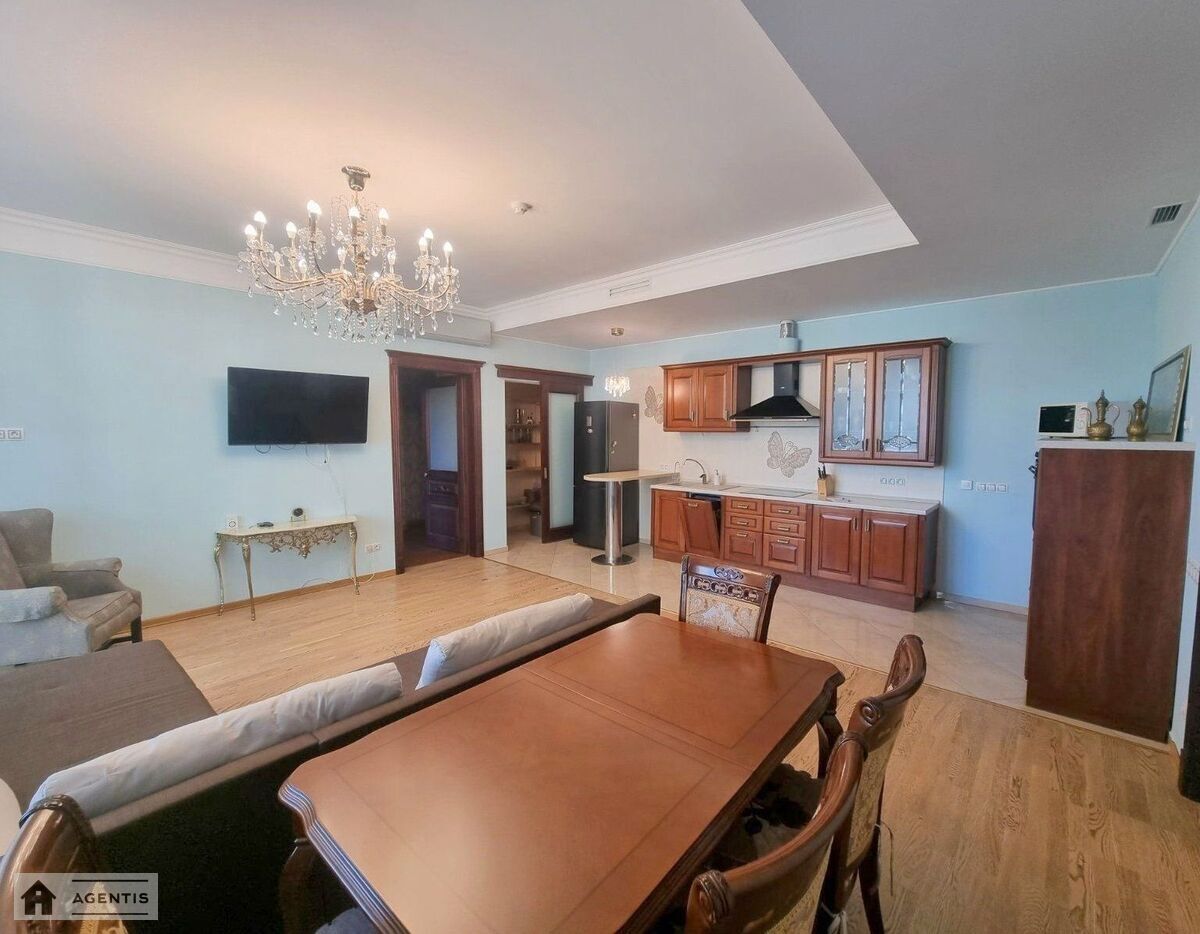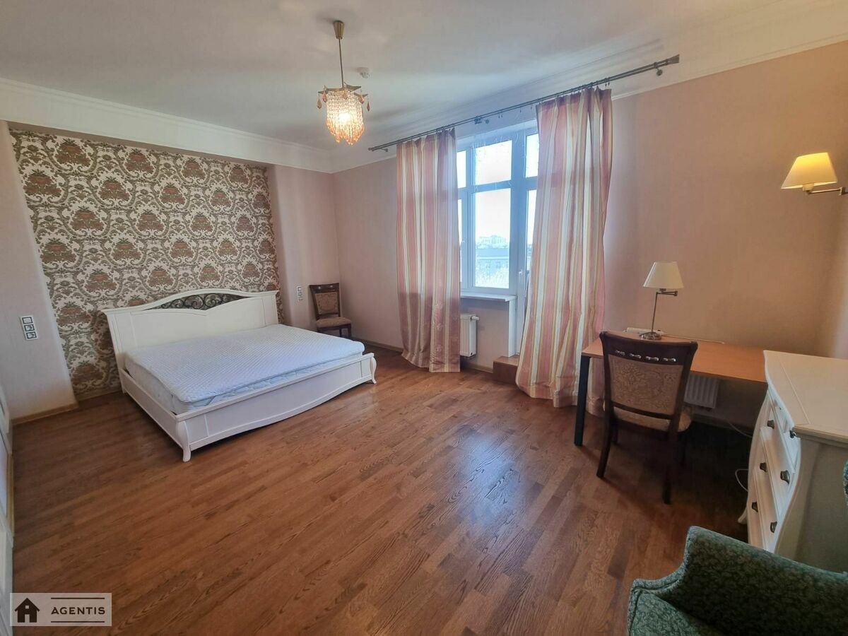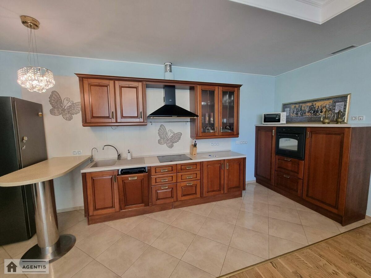 простора квартира на вулиці Панаса Мирного на розі вул. Гусовського у Печерському районі. Будівля виконана з червоної цегли. Загальна площа квартири становить 175 кв.м, розташована на 16 поверсі, з гарним ремонтом, високими стелями та просторими кімнатами. Повністю укомплектована меблями та побутовою технікою, підлога в кімнатах оздоблена якісним паркетом, у кухні та коридорі — плитка. Встановлені кондиціонери, бойлери для нагріву води, Планування: