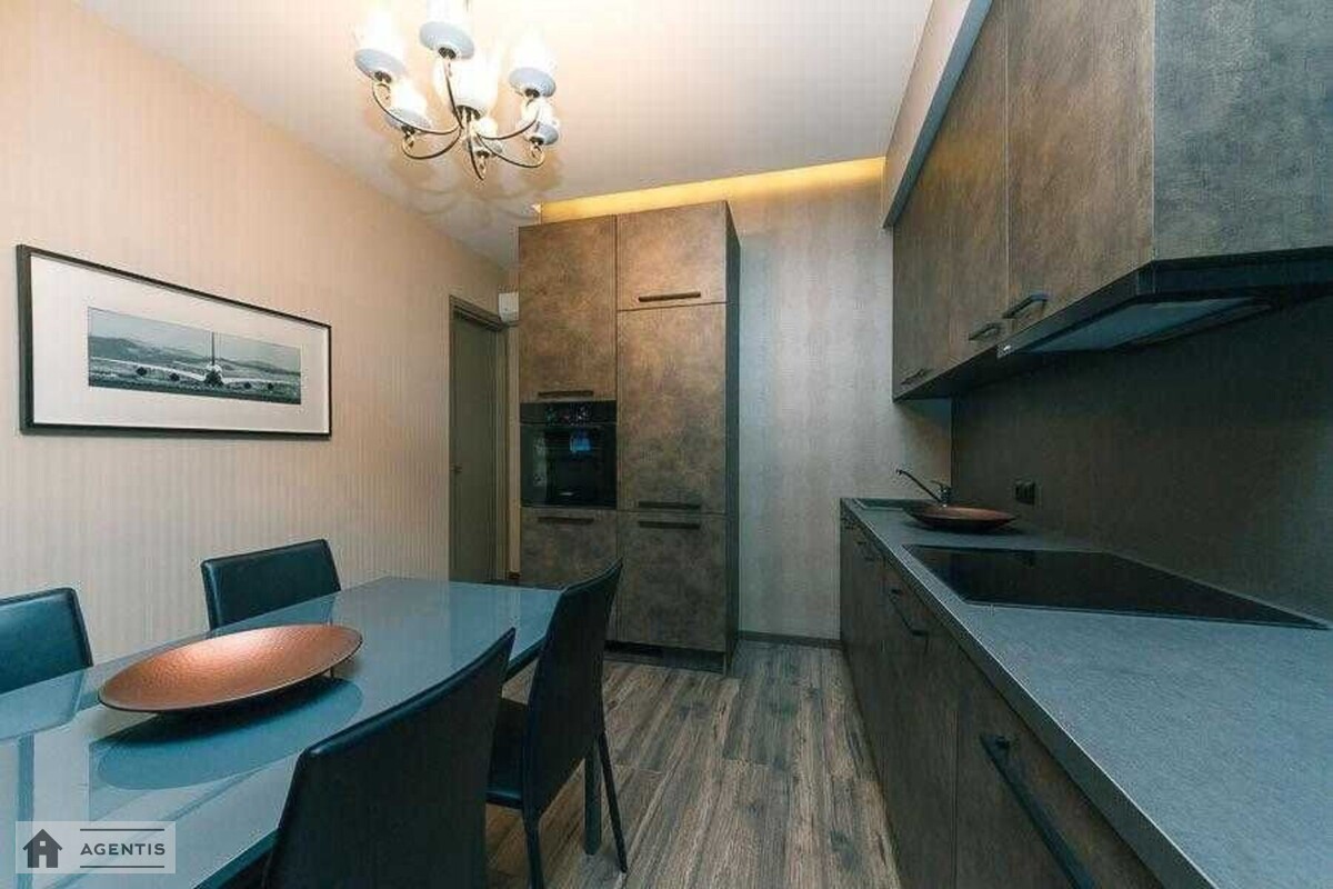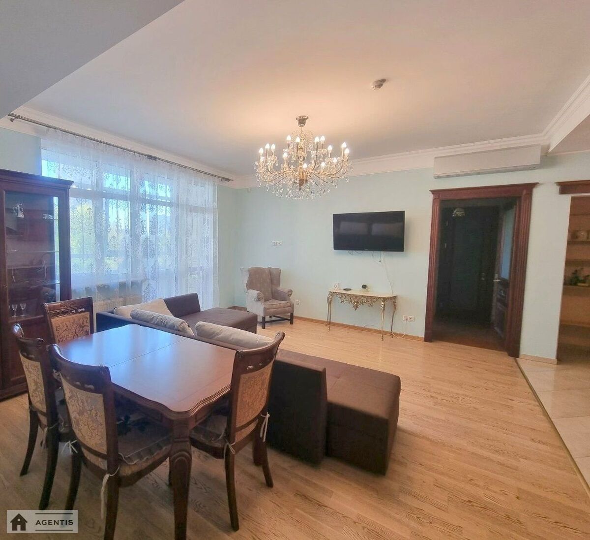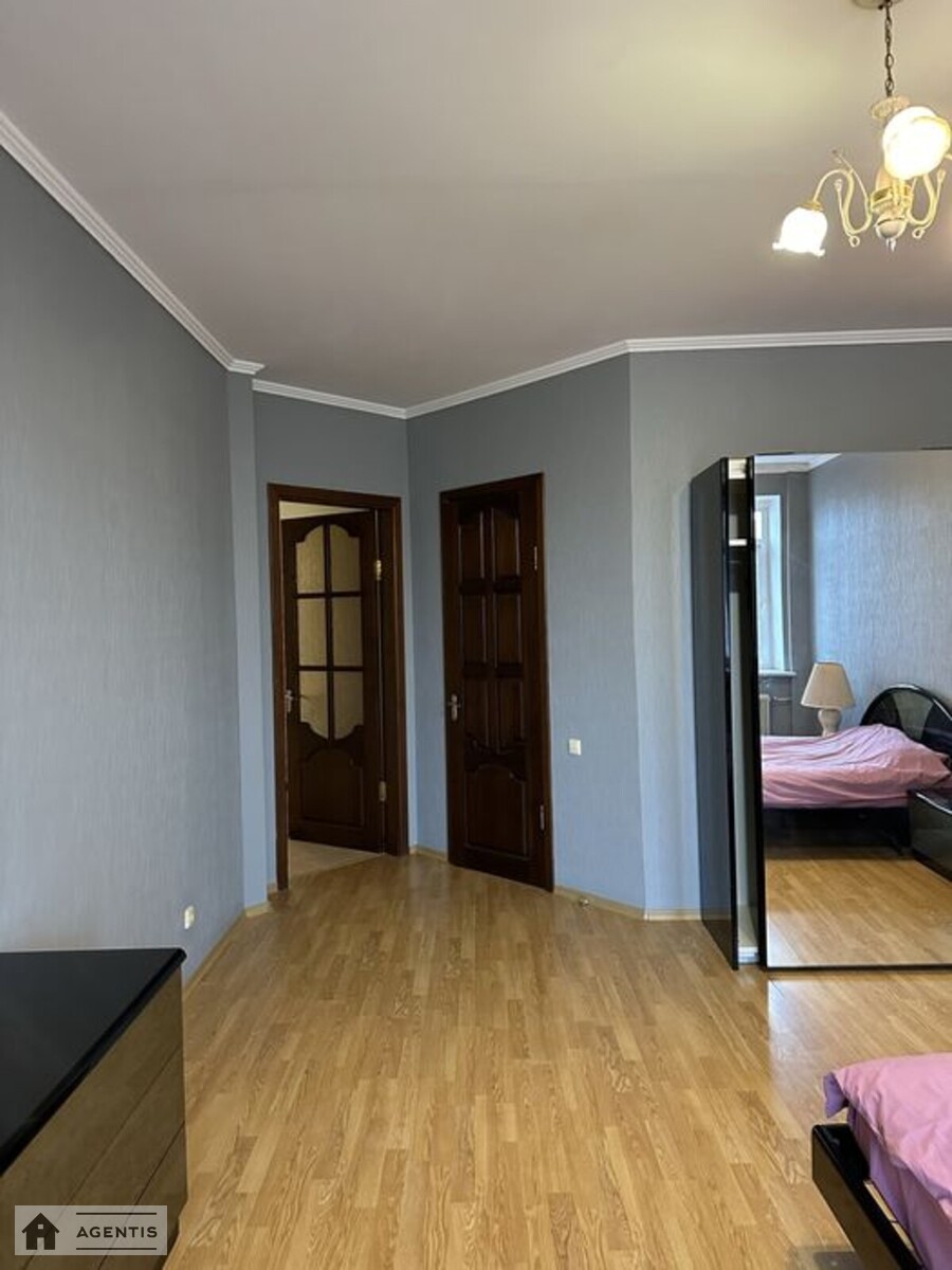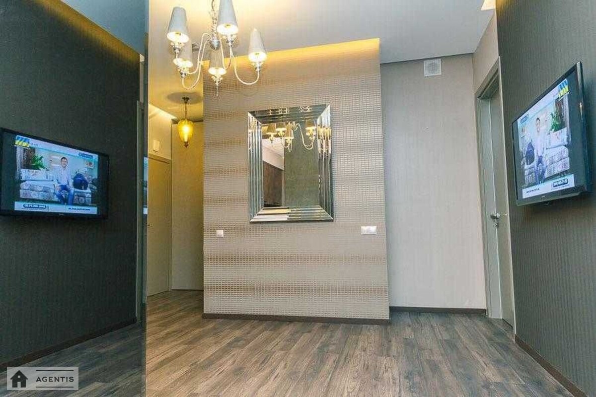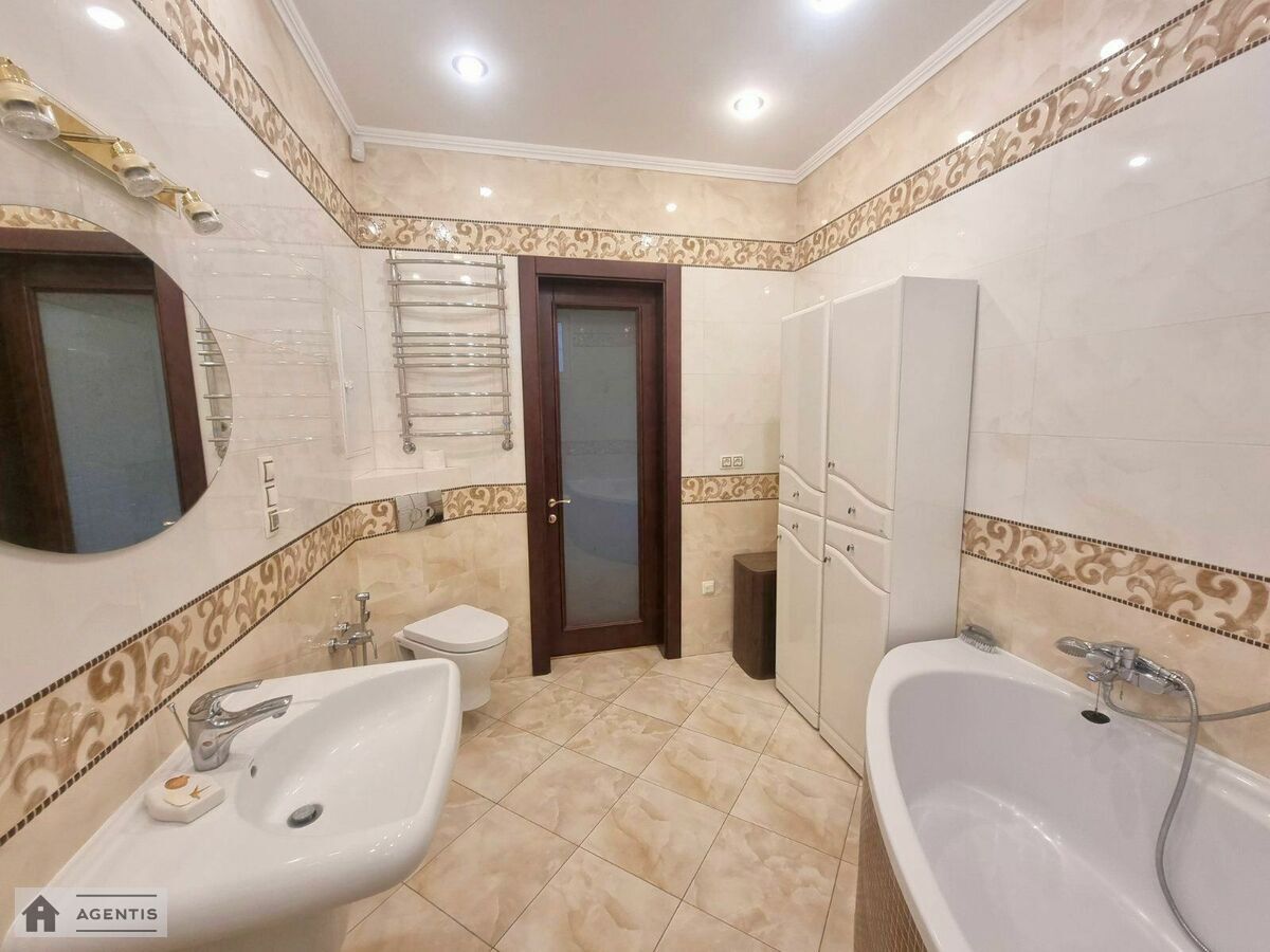 простора квартира на вулиці Панаса Мирного на розі вул. Гусовського у Печерському районі. Будівля виконана з червоної цегли. Загальна площа квартири становить 175 кв.м, розташована на 16 поверсі, з гарним ремонтом, високими стелями та просторими кімнатами. Повністю укомплектована меблями та побутовою технікою, підлога в кімнатах оздоблена якісним паркетом, у кухні та коридорі — плитка. Встановлені кондиціонери, бойлери для нагріву води, Планування: