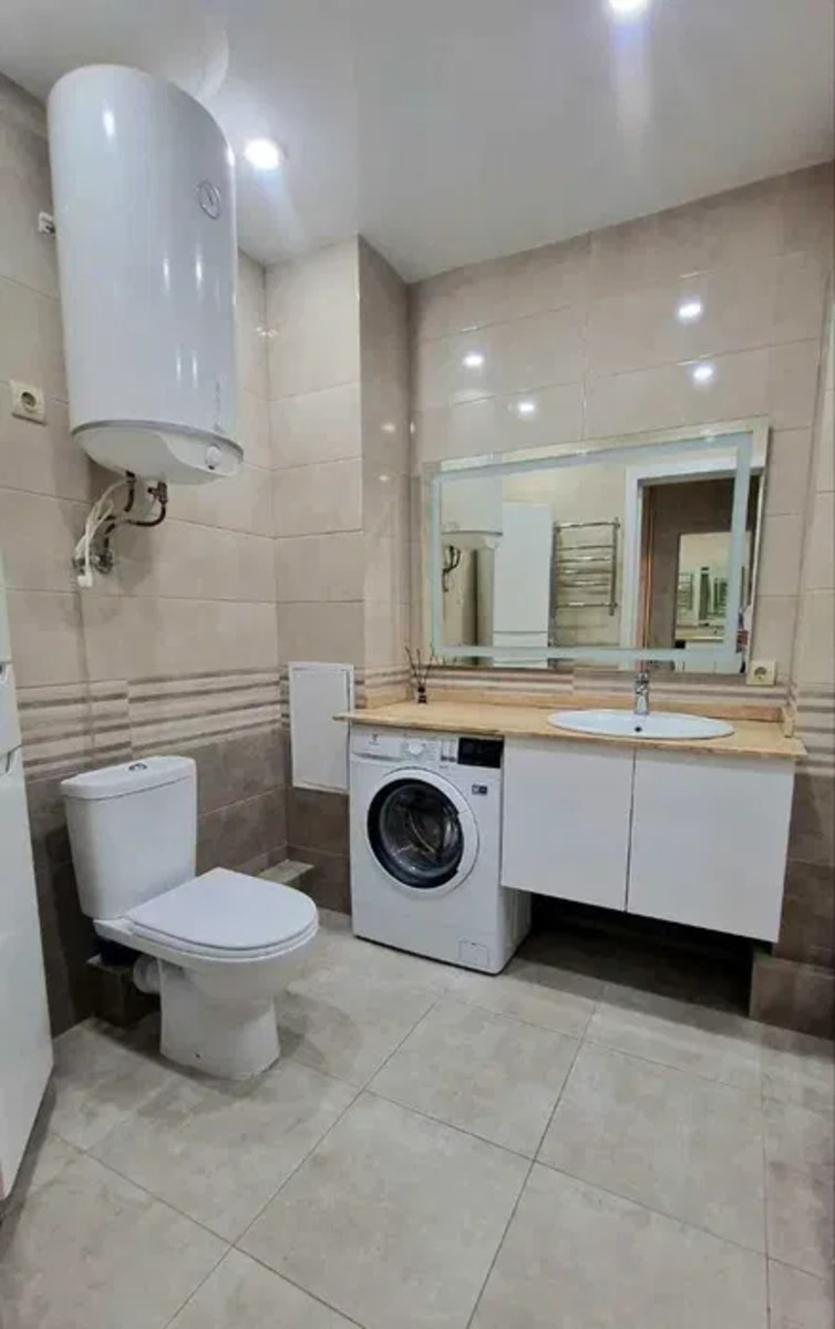 Квартира має спальню з повноцінним ліжком, ортопедичним матрасом та великою шафою. Сучасна кухня вироблена на замовлення з якісних матеріалів. Техніка: варильна поверхня, духова шафа, витяжка, посудомийна машина, холодильник, котел для індивідуального опалення, пральна машина, кондиціонер. Всі сантехнічні роботи і електрика виконані на високому рівні з залученням кваліфікованих майстрів. В квартирі ніхто не проживав.Перша здача