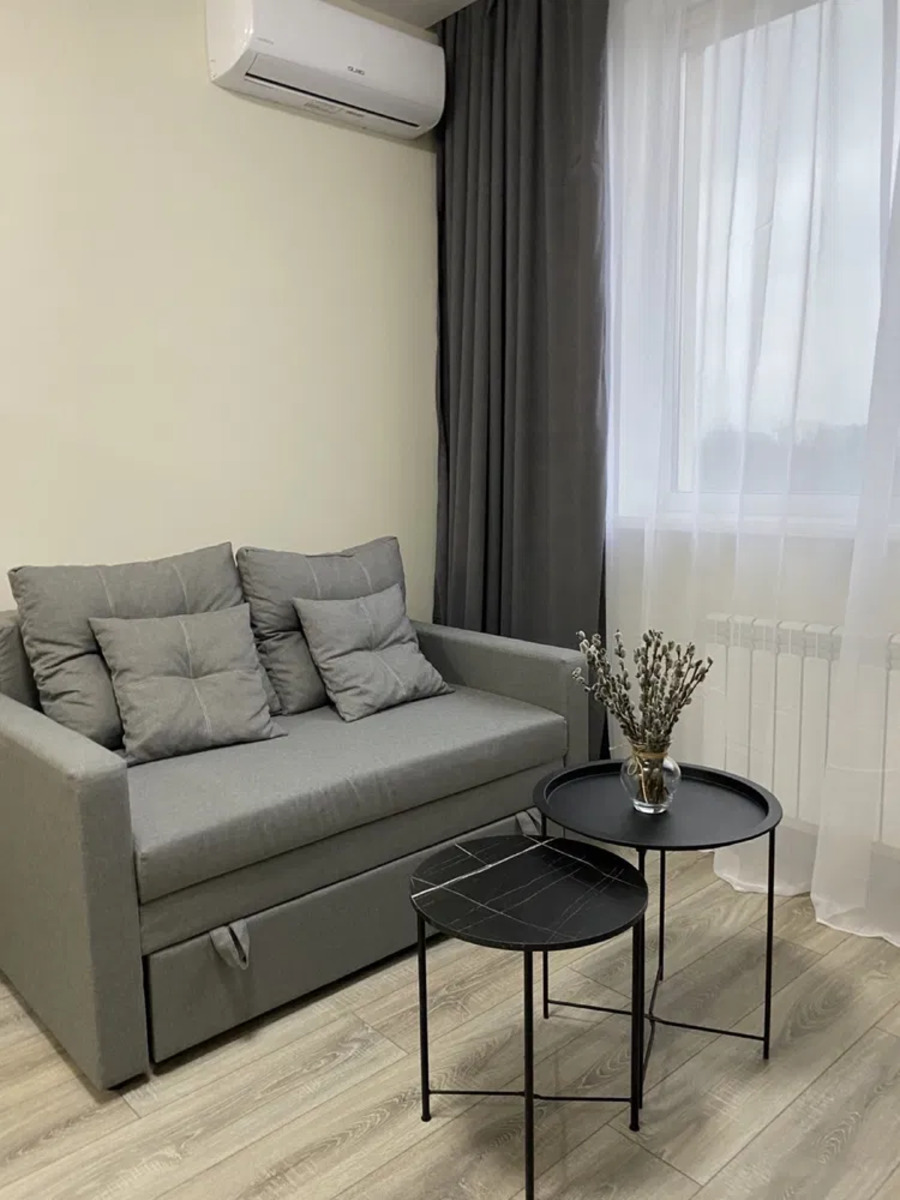 Пропонується в оренду 1-кімнатна квартира в ЖК Львівський квартал, Глибочицька 13, новий ЖК, будинок бізнес класу, 5 низький поверх, є паркінг, газовий котел. У квартирі зроблений дизайнерський ремонт, всі меблі нові. Ортопедичне велике ліжко 160/200 з новим ортопедичним матрасом. Куплений новий ортопедичний диван, розкладний. Засклений затишний балкон. Велика кухня, панорамні великі вікна. Дуже економні комунальні платежі. Планування: велика простора однокімнатна квартира, кухня відокремлена від спальні полустіною.