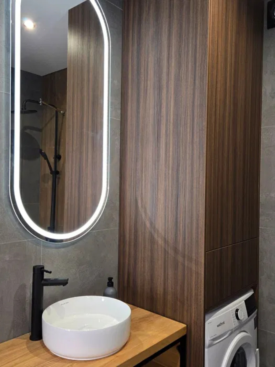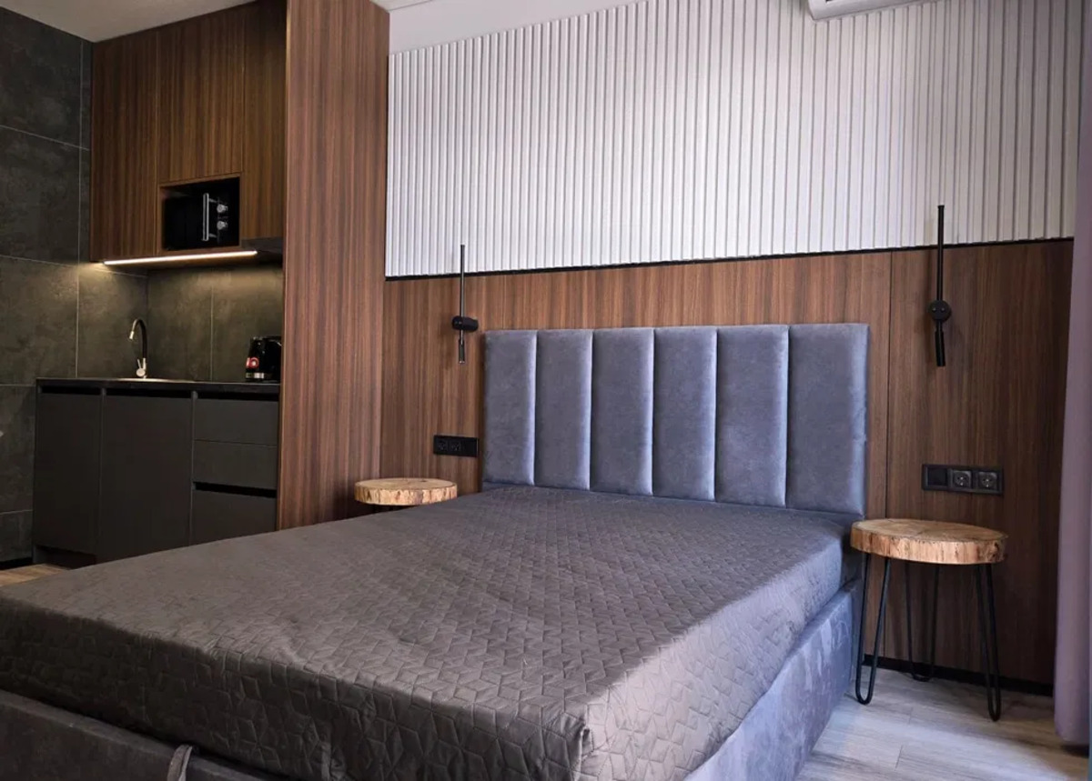 Спальня с большой двуспальной кроватью, шкафом-купе и прикроватными тумбочками, что создаёт атмосферу уюта и спокойствия. Санузел совмещённый, в прекрасном состоянии, с ванной, бойлером и стиральной машиной. В квартире установлены счётчики на воду и отопление, что позволяет контролировать коммунальные расходы.