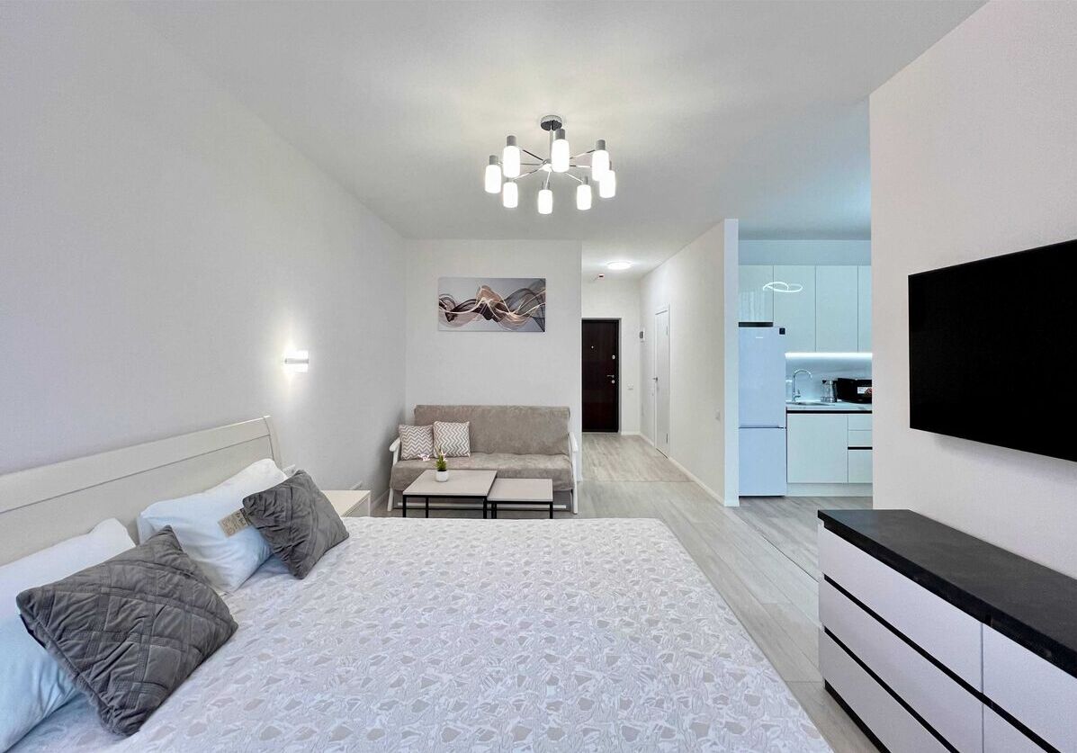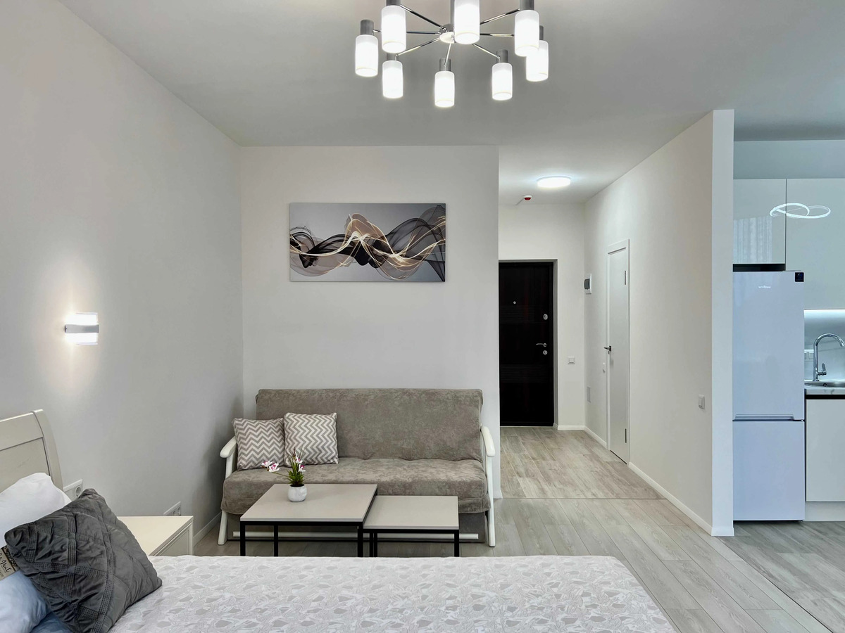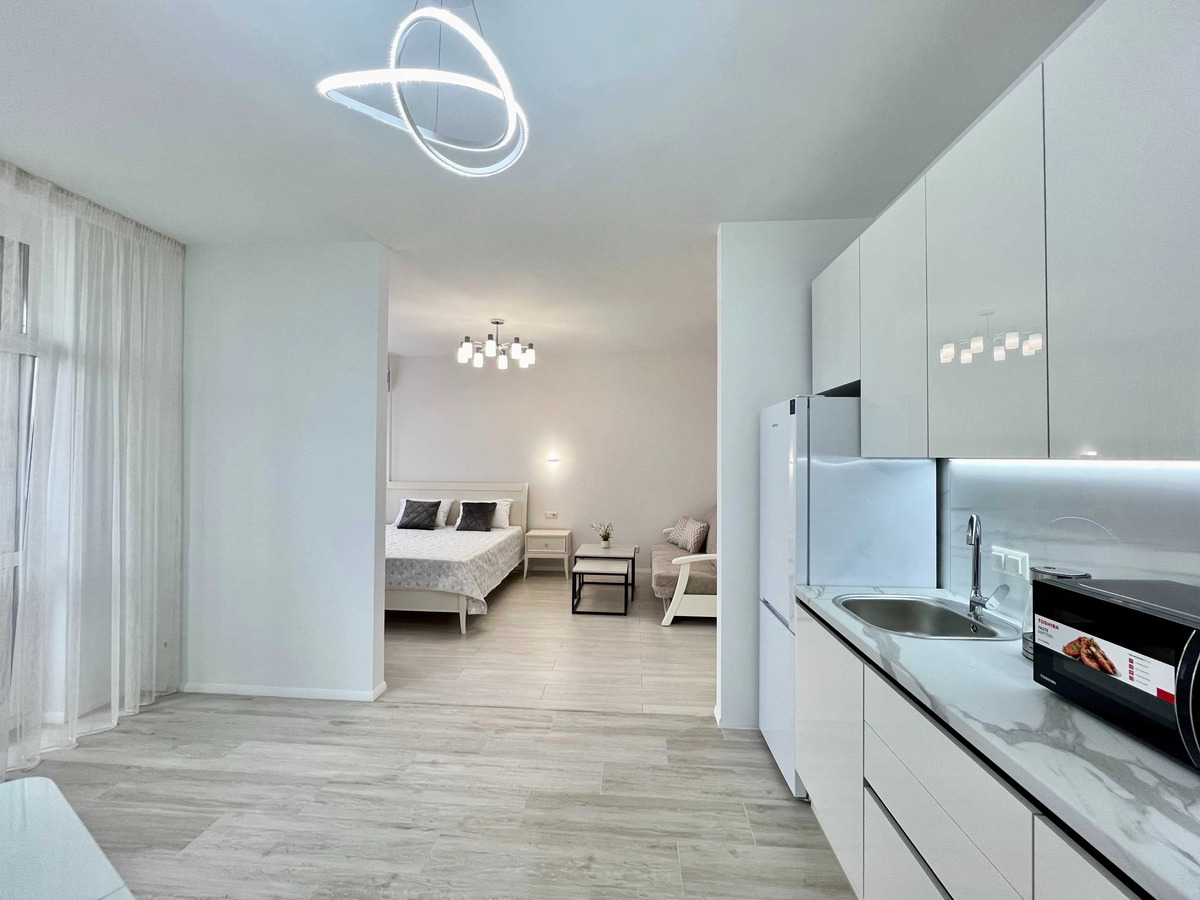 Зручна, зонована 1 - кімнатна квартира , окрема спальня + вітальня з кухонною зоною, повністю готова до життя.